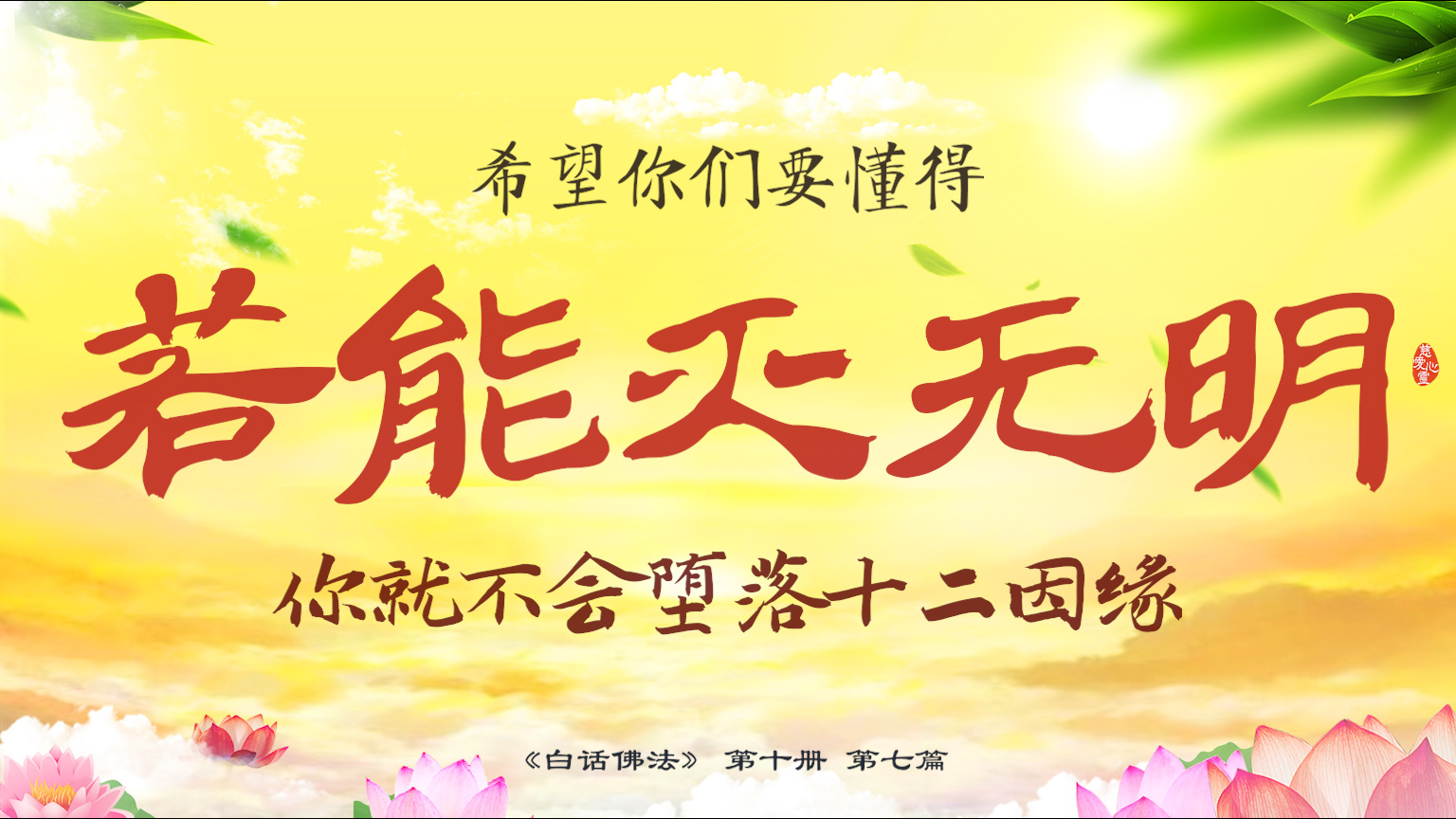 第十一个因缘,生。“生”这个因缘,是你怎么样来生活,并不是说你生出来。在你的生活当中,你好好地活着,你就慢慢地像人一样地活着。并不是这样你会被染着,你不当心会像鬼一样地活着,你就六道投鬼。生就是让自己有限的生命投入到无限的弘法度人中去,有些人把有限的生命投入到无限的赚钱当中,他就会被名利钱财所吞没。第十二个因缘是死。死亡了,就会进入六道轮回。好了,师父给你们大概地讲了讲十二因缘的全过程。死是很痛苦的,但是又避免不了,修得好很多人还会起生。师父跟你们说,好自为之啊。