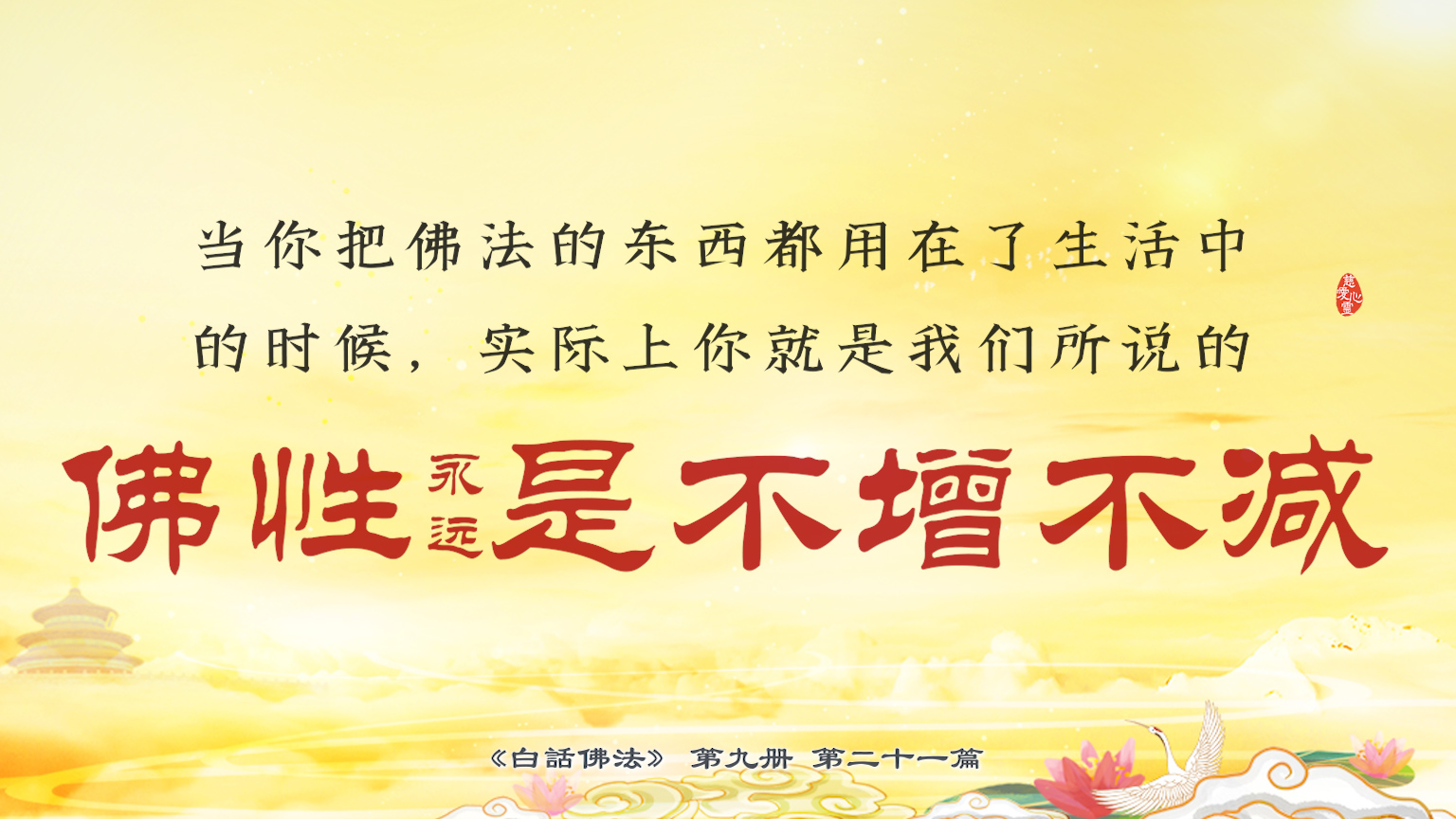 佛性不增不减是什么含义呢?就是说,佛性没有动过,你本来就有良心,你本来就是个好人,你后来变好了,是因为你开始的时候没有找到佛性。你做了坏事,后来你又变好了,实际上你并没有变,你还是原来的你,变什么了?一面镜子照别人照不清楚,是镜子坏了吗?是因为镜子上有脏东西啊。等到你把镜子擦干净了,你说,“咦,这镜子怎么会变得干净了?”因为原来有灰尘在上面,你没有擦干净啊。